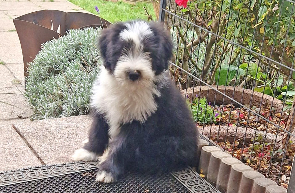 Der kleine Kasimir lernt jetzt bei uns die ersten Grundkommandos wie Sitz, Platz und Komm. Auch der Gang an der Leine kennt er mittlerweile schon und findet dies nicht als fremd.